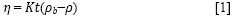 A partir de los datos generados con la ecuación [2], y con ayuda de la ecuación de la ley de Stokes (ecuación [1] (8), se evaluó la viscosidad dinámica, η (mPa s) del sistema NaNO3 / H2O, a diferentes temperaturas de trabajo, previa determinación de la constante de calibración K (mPacm3/g).