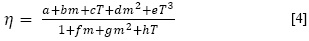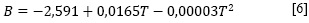 La dependencia del coeficiente B de viscosidad de la ecuación anterior, con respecto a la temperatura, fue expresada con una ecuación [6].