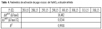 Aquí los valores de ΔH∞‡ y ΔS∞‡ fueron determinados usando un procedimiento de regresión lineal a partir de la Figura 1 de ΔG∞‡ en función de T. Los resultados se muestran en la Tabla 4, e indican que estos parámetros son independientes de la temperatura.