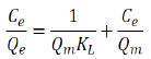 [3]Donde 𝐶𝑒 y 𝑄𝑒 representan la concentración de AM en el equilibrio (mg/L) y la capacidad de adsorción en el equilibrio (mg/g), respectivamente. 𝑄𝑚 indica la capacidad máxima de adsorbato (mg/g) adsorbido en el equilibrio cuando el adsorbente está saturado y la constante KL es proporcional a la energía de adsorción (L/g). Al graficar 𝐶𝑒/𝑄𝑒 vs 𝐶𝑒, se obtienen líneas rectas, de donde KL y 𝑄max se pueden calcular usando el intercepto y la pendiente, respectivamente.