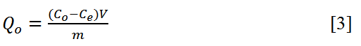 Donde Qo representa la cantidad adsorbida, Co la concentración inicial, Ce la concentración en equilibrio, V el volumen de solución usado y m la cantidad de carbón activado puesto en contacto con la solución de acetaminofén.
