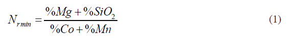 El número de mineral (Nrmin) se calcula a partir del conocimiento de la composición química de la pulpa laterítica. Según el número de mineral determinado por la ecuación (1), su valor caracteriza el comportamiento de la pulpa en la sedimentación. Se ha comprobado que, cuando 7 < Nrmin < 14, la pulpa tiene la sedimentación deseada [17].