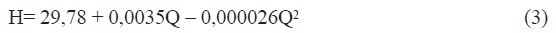 Se propusieron los siguientes modelos matemáticos (3, 4 y 5) que permiten obtener el punto de operación en correspondencia con los requerimientos del caudal de la bomba centrífuga. Estos modelos se obtuvieron teniendo en cuenta los nomogramas de las bombas centrífugas instaladas, con un coeficiente de correlación igual a 0,95.