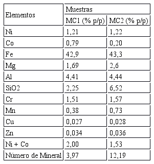 Cabe destacar que, en los reactores del proceso de lixiviación en la tecnología ácida a presión, el níquel y el cobalto presentes en la fracción magnética prácticamente no se lixivian y crean dificultades tecnológicas que ocasionan pérdidas en las colas del proceso. En la Tabla 2 se observa la composición química de las muestras seleccionadas para el experimento.