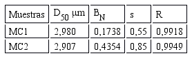 Como puede observarse, en las pulpas lateríticas existe un predominio de las fracciones finas de forma general: el 80% de las partículas corresponde con el diámetro de partícula igual a 0,0068 mm. Estas partículas finas determinan la velocidad de sedimentación de este mineral, así como su comportamiento reológico. No obstante, estas hidromezclas tienen un comportamiento propio de sistemas polidispersos. Se comprobó que el modelo de polidispersión describe la distribución granulométrica de todas las muestras con elevados coeficientes de correlación (Tabla 3), a pesar de las pequeñas diferencias existentes entre ellas.