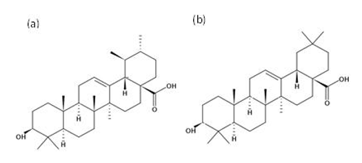 Chemical structures of ursolic acid (a) and oleanolic acid (b).
