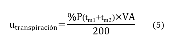 En el caso de no realizar la corrección del valor asignado por la transpiración del material de referencia, la expresión para la estimación de la incertidumbre debido a la transpiración (utranspiración) no se dividiría por 200 sino por 100.