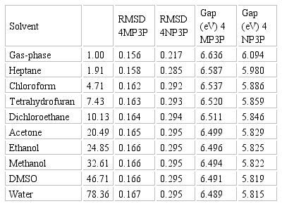 Table 3. RMSD (a.u.) and Gap energies (eV) of 4MP3P and 4NP3P.