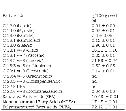 Table 1. Fatty acid profile of Black Borgoña (Vitis labrusca) grape seed oil extracted by supercritical CO2.