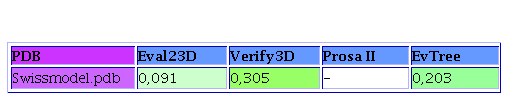 La evaluación del modelo a través de los potenciales evidenció que Swiss Model, en tres de los cuatro programas utilizados (Eval23D, Verify3D y EvTree), mostró tener una estructura 3D óptima (Tabla 3).