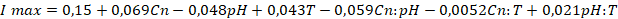 Donde I max corresponde a la corriente máxima. La interacción de variables en el modelo se denota con dos puntos.