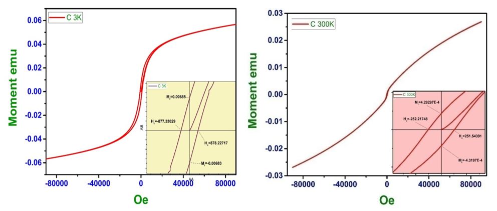 Figure 8. Represents the Mr and Hc values of the hysteresis curves at 3 and 300 K of 2.