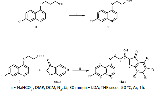 (+/-)2-{10-[(7-cloroquinolin-4-il)sul/anil]-8-hidroxipropil}-2,3-dihi-dro-1H-inden-1-ona 11a