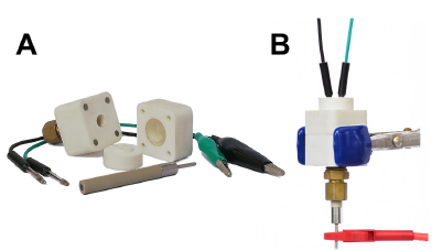 Sensores conductimétricos: el principio de funcionamiento de los sensores de este grupo es la medición de los cambios de la conductividad eléctrica o de alguna otra propiedad relacionada con la conductividad, ya sea de una porción de un material o del seno propio del material cuya conductividad se ve afectada por la presencia de un analito. Las mediciones con estos dispositivos determinan la habilidad de una sustancia para restringir el paso de una corriente entre dos electrodos -resistencia eléctrica o en su lugar impedancia si emplea una corriente alterna- [61].