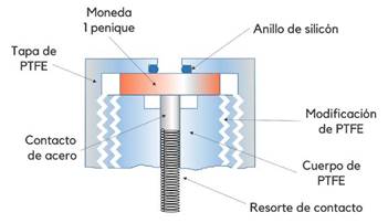 Las mediciones del 4-MEC con sensores se caracterizan, hasta la fecha, por emplear la técnica electroquímica CV. En la lista de la Tabla 1 se aprecia un sensor espectroelectroquímico CV-SERS con muy buena selectividad [101], un par de dispositivos a base de electrodos serigrafiados de grafito[123], [124] y un sensor particular diseñado con una moneda de un penique [125]. En este último estudio, Fang Tan et al. emplearon una moneda británica de acero recubierto de cobre como electrodo indicador en una celda de politetrafluoroetileno (ver Figura 7). El prototipo de muy bajo costo, utilizado además para determinaciones de mefedrona, reportó el mejor LOD (0,5 gg/mL) para la catinona sintética 4-MEC.