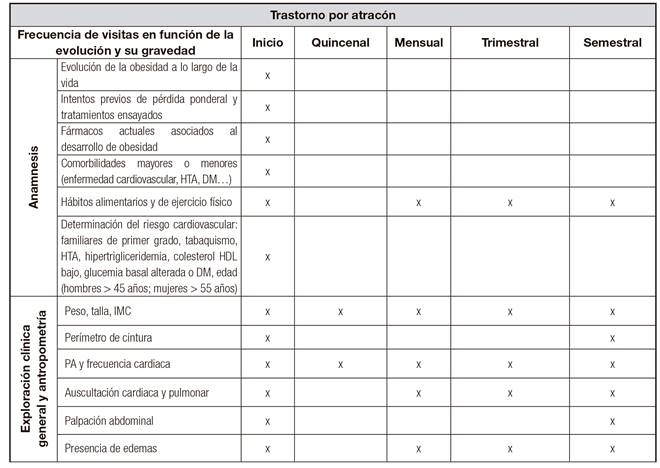 El trastorno por atracón se ha asociado con frecuencia al sobrepeso y a la obesidad en individuos que buscan tratamiento, por lo que hay que realizar una buena historia de hábitos y de alimentación estructurada, así como de frecuencia de ingesta y fluctuaciones en el peso. Sin embargo, este trastorno es distinto de la obesidad; la mayoría de las personas obesas no tienen atracones recurrentes 6,7.