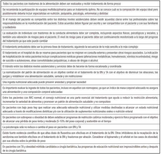 267. Alimentaria GdtdlGdPCsTdlC. Guía de Práctica Clínica sobre Trastornos de la Conducta Alimentaria. Madrid: Plan de Calidad para el Sistema Nacional de Salud del Ministerio de Sanidad y Consumo. Agència d'Avaluació de Tecnologia i Recerca Mèdiques de Cataluña; 2009. Guías de Práctica Clínica en el SNS: AATRM Núm. 2006/05-01. Disponible en http://www.guiasalud.es/GPC/GPC_440_Tt_Conduc_Alim_compl_(4_jun).pdf (pendiente actualización).
