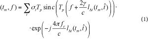 where: c is speed of light; f is the wave frequency; j is √–1; σi is the electromagnetic scattering coefficient of the ith scattering point; Tp is the pulse width; fc is the carrier frequency; γ is the frequency modulation slope; tm is the slow time;