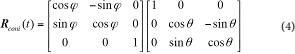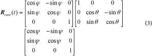 Considering φ as coning angle, θ as nutation angle, and Ψ as spinning angle, then Rconi(t) in Eq. 2 can be expressed as:
