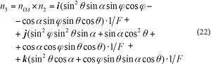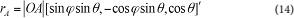 where: i, j and k are the x axis, y axis, and z axis in the radar coordinate system, respectively; nOA = rA/|rA|, and the expression of F is: