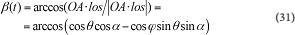 where β in Eq. 28 to Eq. 30 can be obtained by cosine theorem: