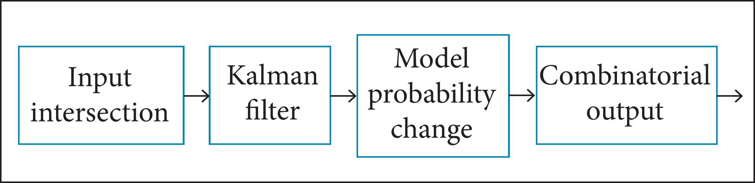 The algorithm uses multiple motion models to match the tracking target motion mode. At each moment, a certain model is assumed to be valid; the filter’s initial condition, which matches the certain model, is obtained by mixing all filters’ estimated states at the previous time. Finally, updating the mode probability by likelihood function of model matching, the state estimation is gained by combining all filters’ corrected estimated states (Cao and Wen 2010; Deng et al. 2005). In order to further improve the tracking accuracy, the double-observation points are used to track the distance dimension and Doppler dimension, respectively. The recursive process of the IMMKF algorithm is shown in Fig. 9.