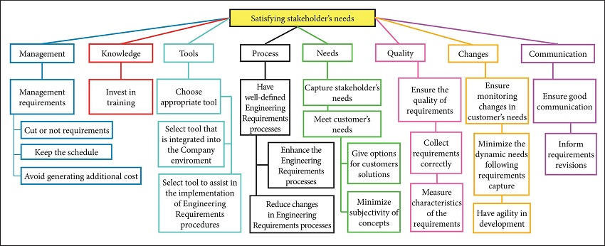 It is recommended, from the elaborated maps, the structuring of each detected problem and the use of multicriteria decision tool for choosing the most suitable alternatives for improvements in the process of gathering requirements and in the relationship between customer and supplier, generating a basis for making decisions throughout the development cycle of complex systems.