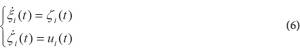 According to the position and velocity of the expected formation of the multi-UAV system, ξi(t) = ξi(t)ξ0(t) – ri and ζi(t) = ζi(t)ζ* are denoted, then control protocol (Eq. 8) can be transformed into: