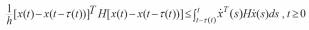 Lemma 2 (Lin and Jia 2011): for any real differentiable vector function x(t) ∈ Rn, any differentiable scalar function τ(t) ∈ [0, h], and any constant matrix 0 < H = HT ∈ Rn × n, the following inequality can be obtained: