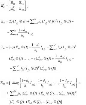 where: δ = [εiTσ(t), εiσ1T(t – τ1),εiσ2T(t – τ2), ...,εiσMT(t – τM)] Considering η = [εσiT(t) – h1, εσ1iT(t), εσ2iT(t), ..., εσM(t)], where h > 0 is a constant, it is obvious that Ξσi (δi – η) = 0. Therefore: