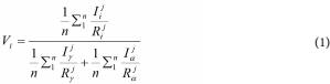 where: n is the number of peaks examined for each phase (being i the phases γ or α); j = 1, 2, 3, …, n; R is the material scattering factor and is described in Eq. 2: