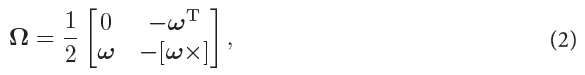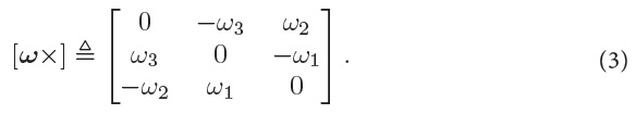 [ω1ω2ω3]T ∈ ℝ3 is the SB representation of the angular velocity of SB w.r.t. SR and [ω×] is the cross-product matrix of ω, i.e.: