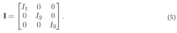 I ω ∈ ℝ3 is the SB representation of the vehicle’s angular momentum; I ∈ ℝ3×3 is the vehicle’s inertia matrix w.r.t. SB. It is assumed that the vehicle has a symmetrical structure so that I can be written as: