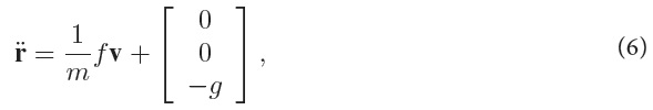 [v1 v2 v3]T ∈ ℝ3 is the unit vector perpendicular to the plane of rotors; f is the magnitude of the total thrust; g is the gravity acceleration; m is the vehicle’s mass.
