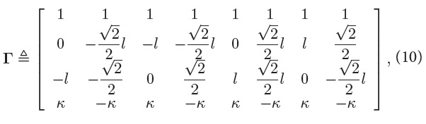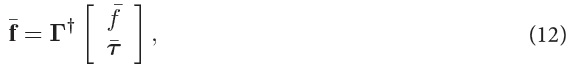 By inverting Eq. 11, we can obtain the individual thrust commands from f and τ,by: