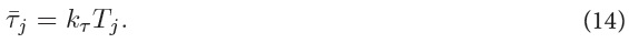 The next step is to convert from fj and τj to Tj. For this end, a preliminary test was made, which showed a linear relation between these quantities, i.e.: