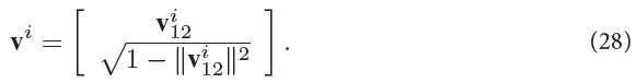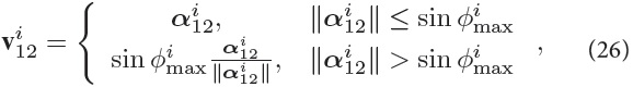 The control law (Eq. 26) provides the horizontal projection vi12 of the normal vector vi. Since vi is a unit vector, one can thus write: