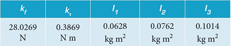 Now denote the thrust and the reaction torque produced by the j-th rotor by, respectively, fj and τj, . = 1, …, n, being n the number of rotors. The usual aerodynamic models for the rotors are: