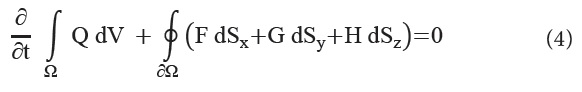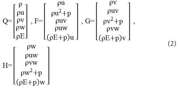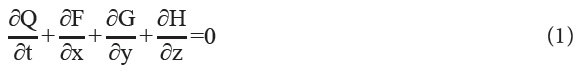 where: Q is the vector of conserved quantities; F, G and H represent the convective fluxes in the following form: