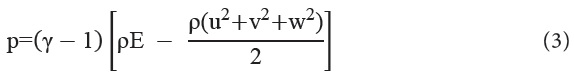 where: ρ, u, v, w, p and E denote density, velocity components, pressure and internal energy, respectively.