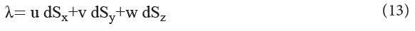 where: V is the cell volume; dSx, dSy and dSz denote components of the outward vector normal to the surface.