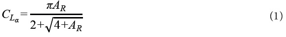 If we consider HLH as a wing, then CLα obtained by using Eq. 1 is equal to 0.00422/deg. It is important to note that Eq. 1, taken from Raymer (2012), will provide CLα in per radian, and, for the purpose of comparison of results, this digit has been converted into per degree.