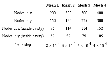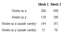 A similar analysis was ran for the domain size. Table 2 shows the values used. Mesh 2 from Table 2 was used as Domain 1 for this analysis. The increase in the total number of nodes was needed so that the refinement at the cavity was constant.
