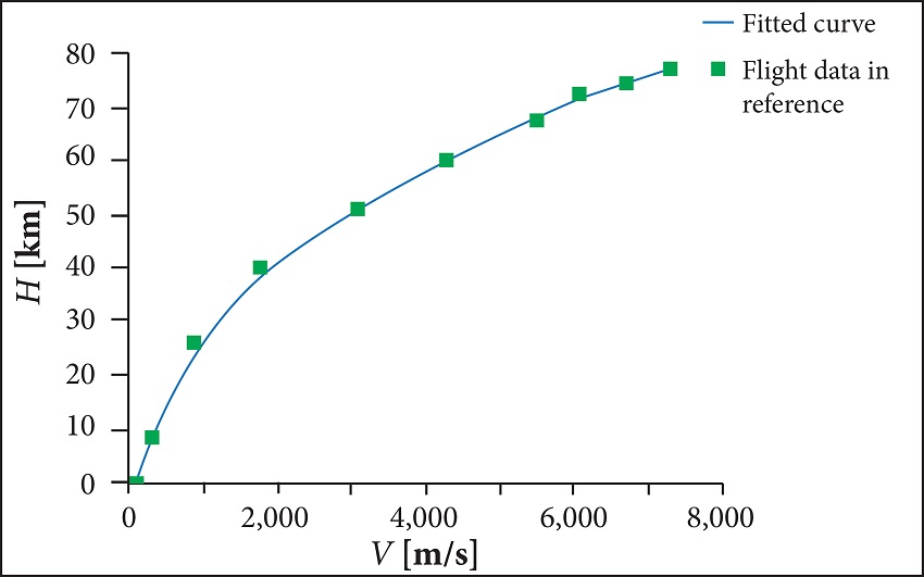 where: c and m are constants; ρ refers to the local air density; ρ0 is the air density at sea level; Rs represents the radius of curvature at the stagnation point; V is the vehicle's velocity; V0 = 7.9 km/s is the first cosmic velocity.