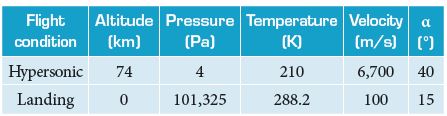 According to the description in the sections "Space Shuttle Re-Entry Description" and "Numerical Model", 2 typical flight conditions were considered (Table 1).