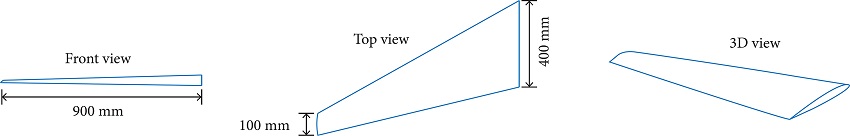 In the past, researchers have used several types of airfoil/wing as a base model to study bird wing surface design. In this research, a 3D NACA 4412, tapered (taper ratio 4), 30º sweptback, half-span wing with a dihedral of 5º, is used as the base wing to measure the effect of surface roughness. A six-component force balance in the IIUM LSWT is used for measuring the aerodynamic loads. The base wing description is given in Table 1. Figure 1 shows the drawing of the base wing. The tests were conducted at a Reynolds number of 4 × 105 based on the mean aerodynamic chord.