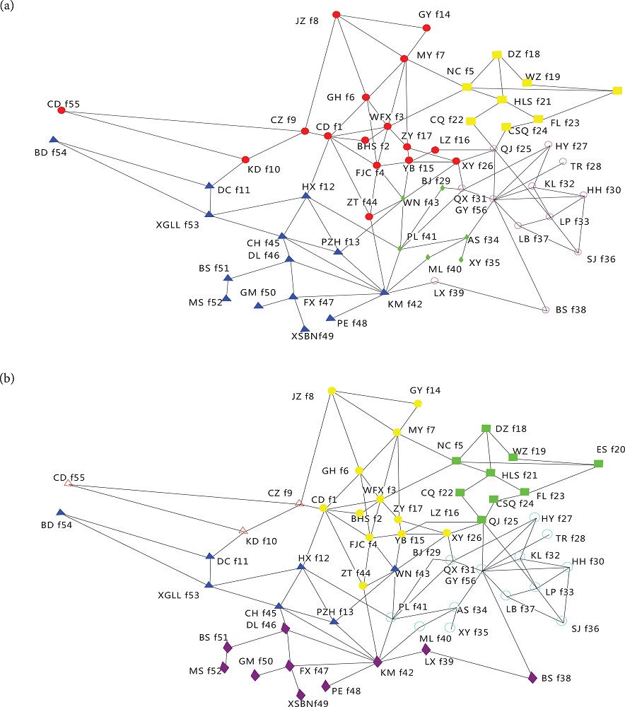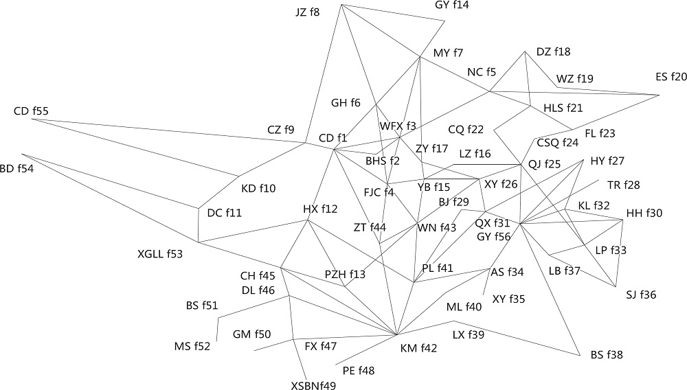 Fig. 10 (a) shows that there are five community structures in ATMTSS network. The five communities divide the Southwest into five regions. Each region has a relatively developed city: CD f1, CQ f22, KM f42, and GY f56 are the capitals of the four Southwestern provinces, while WN f43 is the largest autonomous county in the Southwest region. So, the reason for the formation of community structure in the ATMTSS network is the economic impact of these cities.