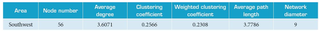 In order to fully analyze the structure and function of the network, the measurement indexes of the network are applied to the ATMTSS network in the Southwest region. First, the non-weighted and weighted indexes are used to analyze the statistical characteristics of the ATMTSS network, and the results are as follows: