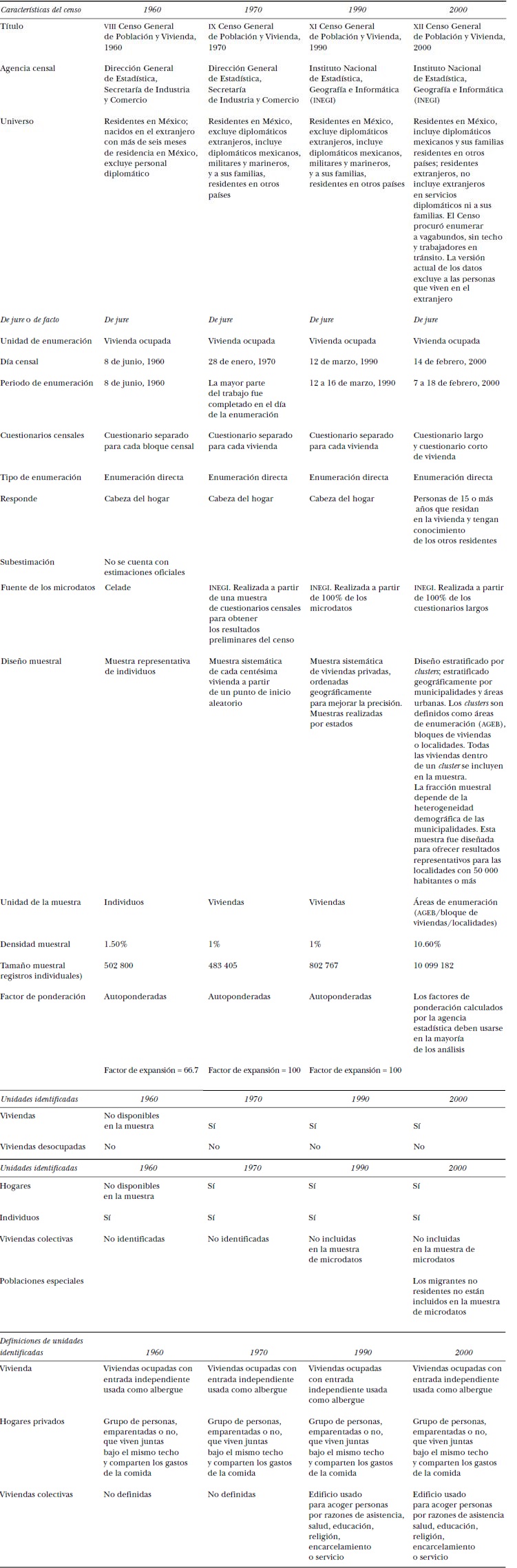IPUMS-Internacional (2000), Muestras censales integradas, 1960, 1970, 1990 y 2000, Minnesota, Minnesota Population Center (Datos y Documentos, CD).