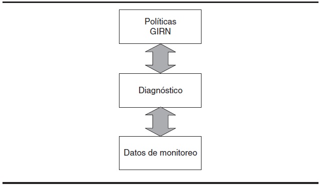 Para diseñar las políticas ambientales es necesario realizar una evaluación previa integral (un diagnóstico) de la evolución de la situación ambiental a través del tiempo, que con base en información confiable y adecuada (datos duros de soporte) revele los diversos problemas que la han afectado, sus causas, efectos y procesos, para lo cual es indispensable contar con un sistema de monitoreo ambiental funcional, que proporcione datos suficientes y confiables tras la observación climatológica, hidrométrica, de la calidad del aire, del agua y del suelo para su posterior procesamiento analítico y logístico. El esquema de la relación entre las políticas públicas que determinan la gestión de recursos naturales y el sistema de monitoreo puede apreciarse en el esquema 1. Esta relación se refleja en el esquema de causalidad propuesto por la OCDE “presión-estado-respuesta” (Herrera, 2000).